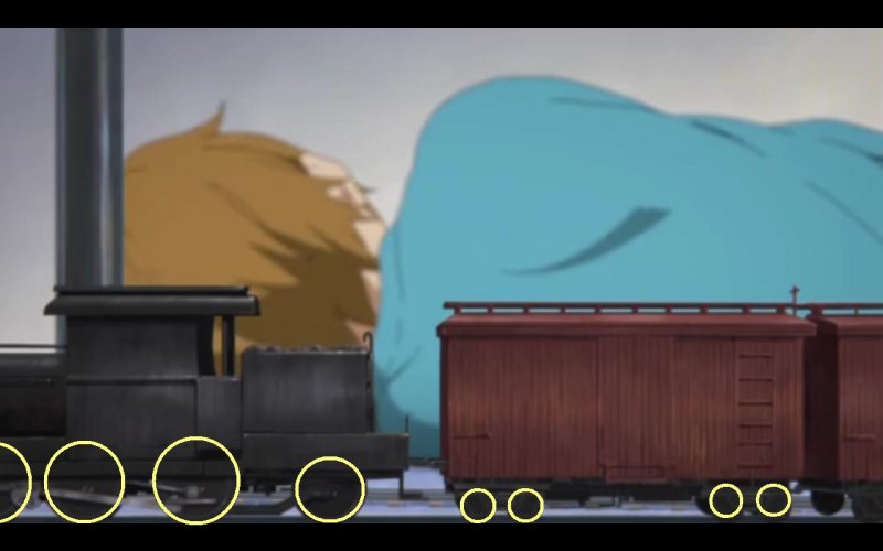 『たまこまーけっと』にまた鉄道模型が出ていた。前回は貨車の側面を斜めから見ている構図で、機関車がすこし見えている程度だったけれど、今回は貨車の側面と機関車の側面が映っていた。