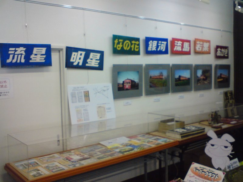 右奥はジオラマ展示・・・・・・なんだけど、流鉄に関係の無いジオラマや車両展示が多すぎ。「ぴょん太鉄道」の協力による展示らしいが、余計なものを持ち込みすぎ。あと「ぴょん太鉄道」のネームプレートを提げた数人のスタッフの無駄な会話がうるさい。