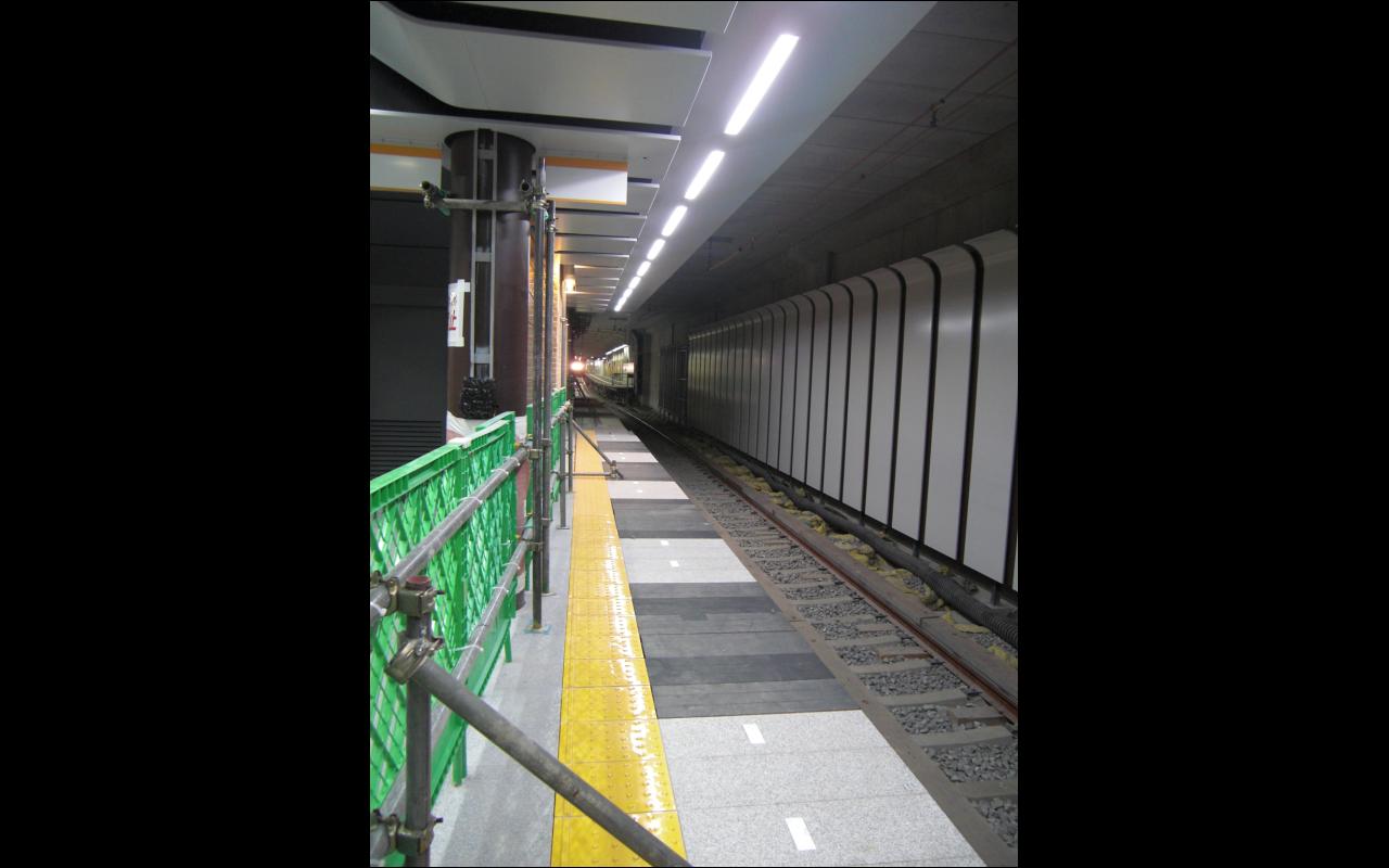 2番線は改良工事終了時に折り返し線となるため、元町側のホームが削られて拡張される西口コンコースの基礎の柱が設置されている。
