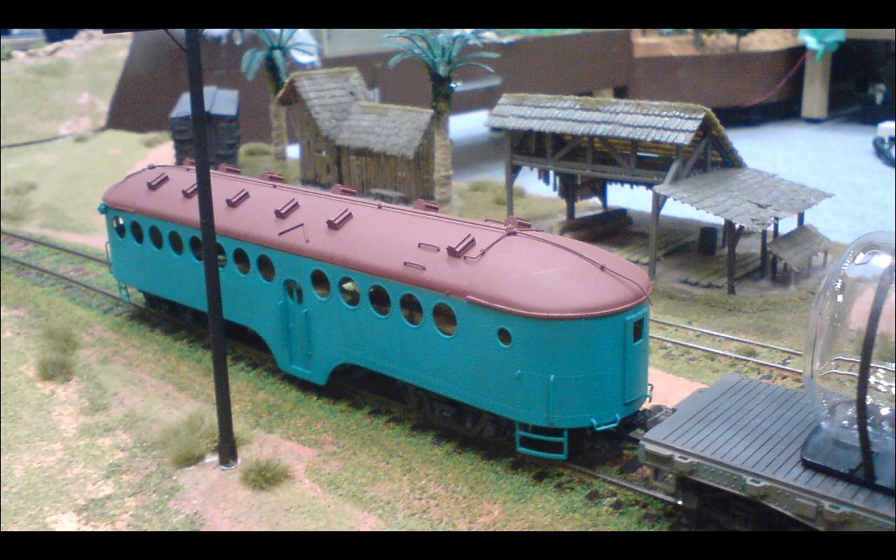 去年も見かけたハワイの鉄道を再現した?レイアウトで見つけたヘンテコリンな車両。前にアメリカの鉄道の本で見たことがあるような気がしないでもない客車。こういうのはネタで1つ2つ手元においておきたい。