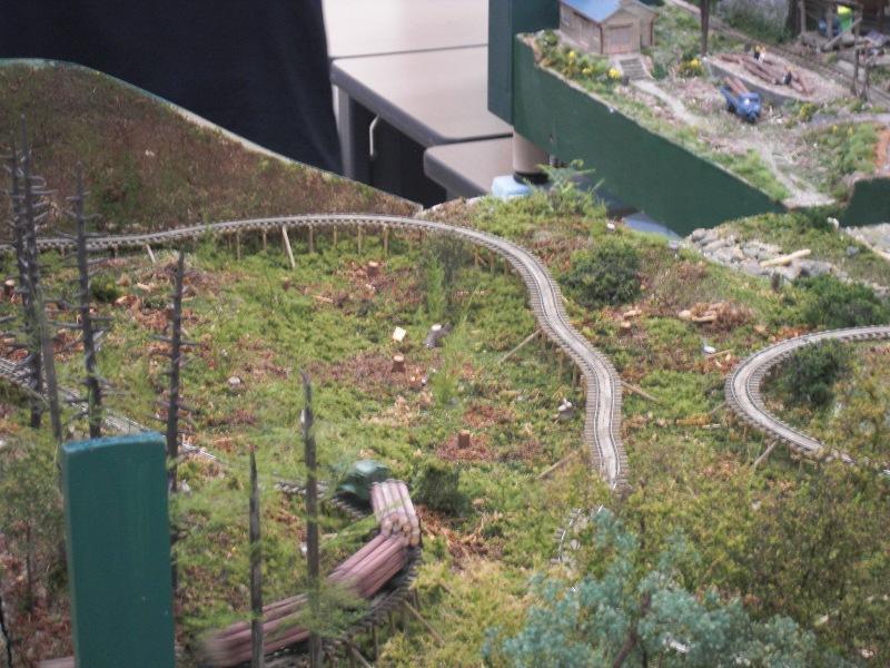 左写真のS字カーブで高さを稼ぐ配線は面白い反面、こうでもしないと実際には小さな機関車では登れないのかなと思ったり。