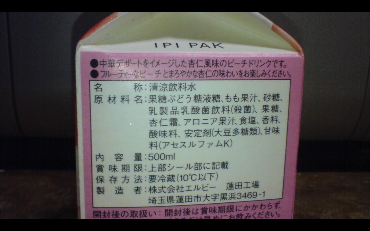 タイトルが長くてどこまでが商品名かわかり辛い。もう売ってないと思うものの一応飲んだ感想。ただの杏仁豆腐のような味の汁の入ったピーチ風味清涼飲料水。以上。