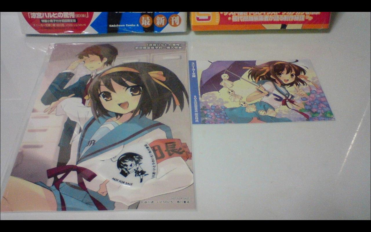 巷で話題?の「驚愕」の (前) と (後) 、ついでにコミックス14巻。虎で買ったらなにやらオマケがついてきた。なんだろう? この三角形の白いのは。