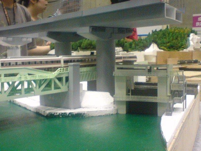 そんな中でいくつかいいと思ったのは未完成状態での展示で、架線柱が無かったものの東武線の隅田川鉄橋を (おそらくほぼスケールで) 再現したジオラマ。