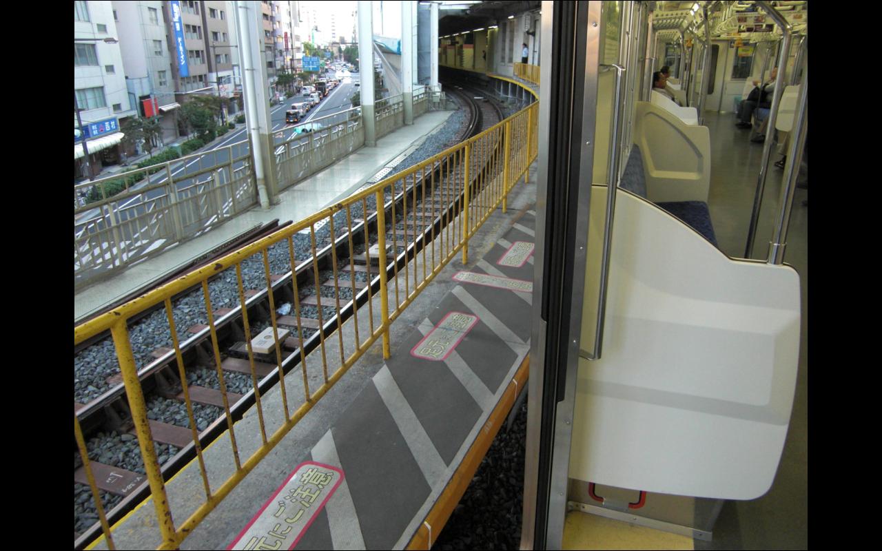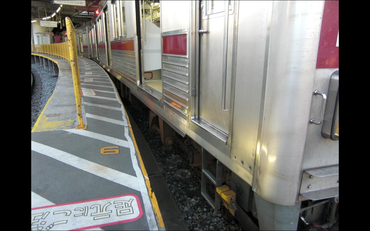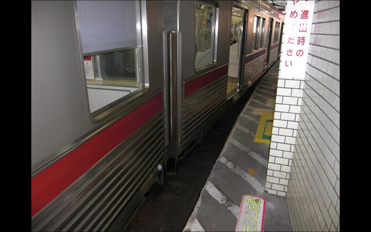 アメリカの地下鉄ではホームの縁が延びて車両とのスキマを塞ぐ機構を備えているところもあるそうで、そういった可動式ホームがあるとこういったカーブがキツイ駅では有効になる。でも、そこまで手の込んだことは東武はしないか。