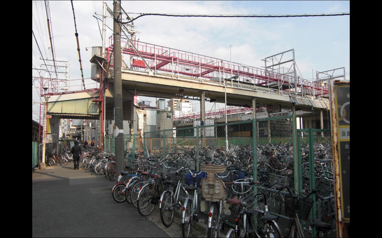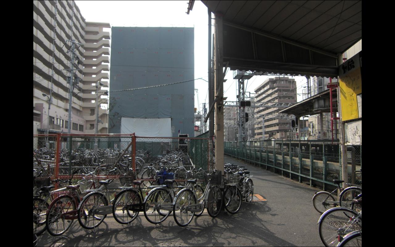 ちょうど、高架化の用地買収で駅の横がスカスカ。なので普段見られないビル裏手の配管とかが良く見える。アーケード商店街も屋根しか無いのはあまり見る機会が無い。