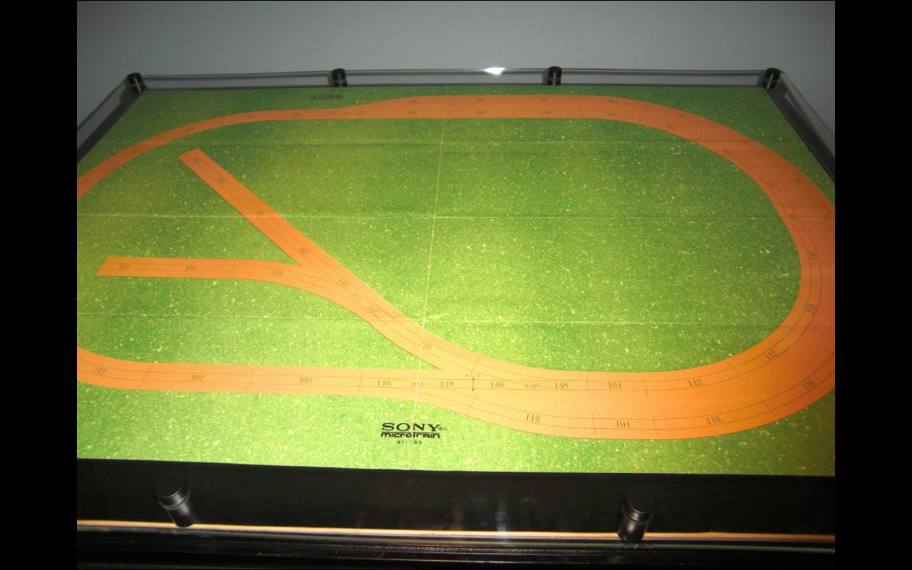 8階展示室の中央にスクリーンが張ってあってそこに映像を映していた。写真はソニーマイクロトレーンのED75。