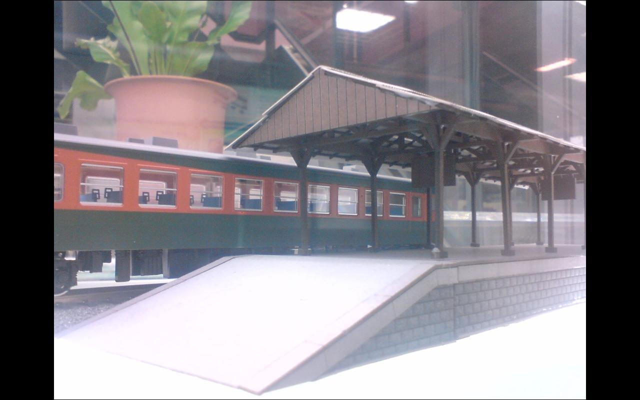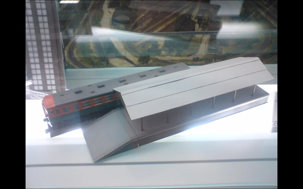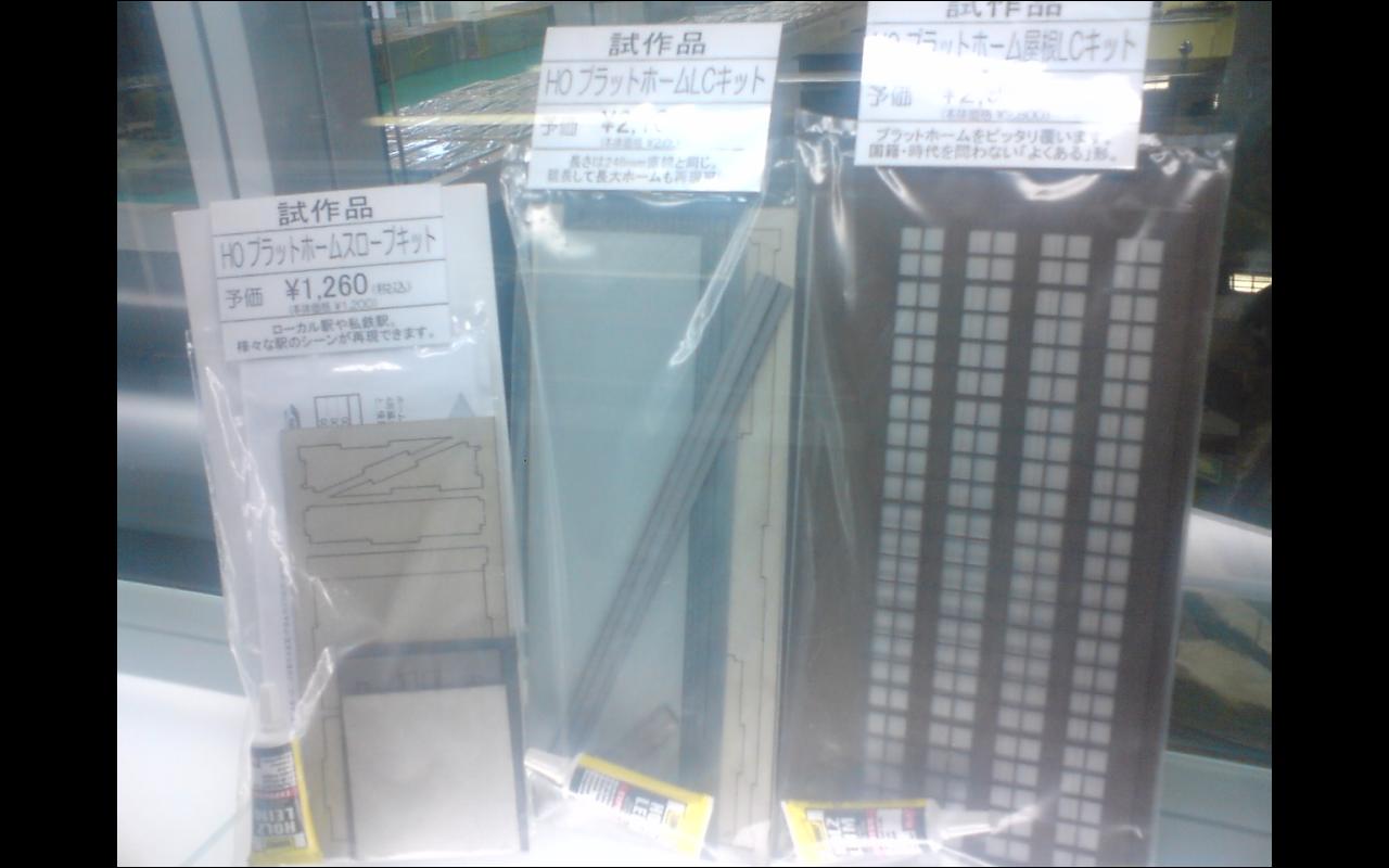 ホビーセンターカトーへ行ったら予告されていたHO用のプラットホームの試作品が165系と一緒に並べて置いてあった。レーザーカットによるペーパーキット。さんけいのとは違い厚紙をレーザーカットしてあるようだ。