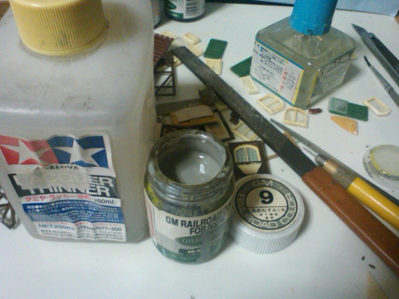 写真10枚目は混ぜたところで、溶剤はタミヤが出しているラッカー系塗料用のシンナーを使用。