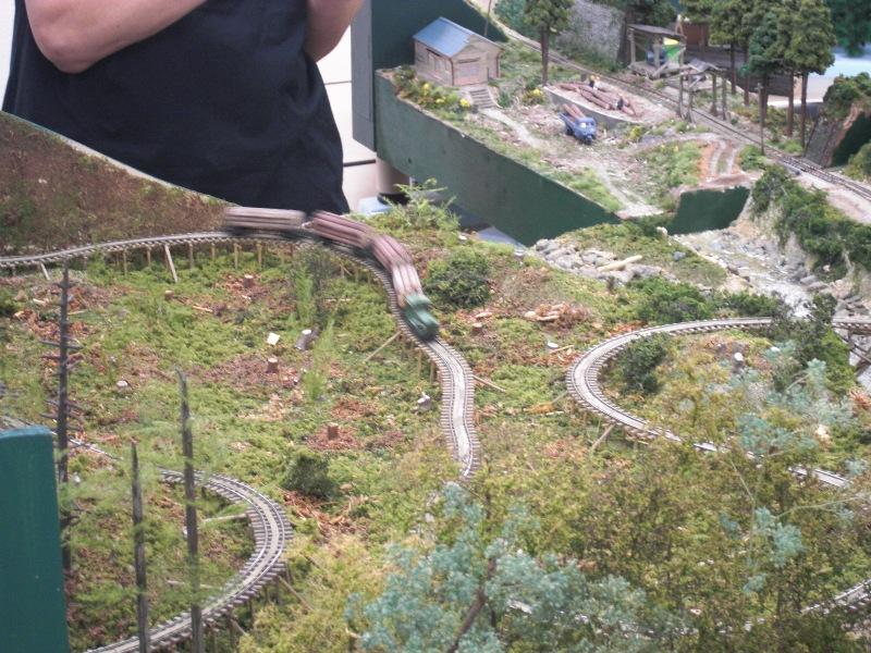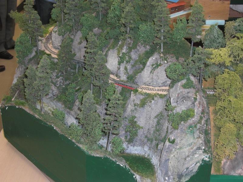 左写真のS字カーブで高さを稼ぐ配線は面白い反面、こうでもしないと実際には小さな機関車では登れないのかなと思ったり。
