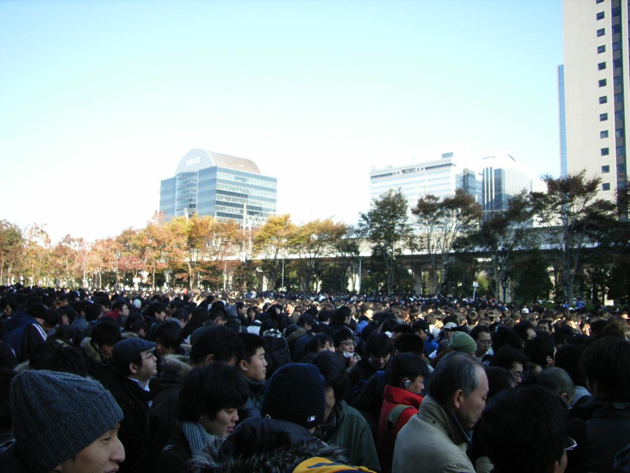 9時30分ごろ急に列が動き出してトイレに行った人の荷物がぽつぽつと置き去りに・・・